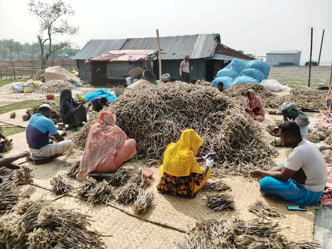 শুটকি উৎপাদনে ব্যস্ত শ্রমিকরা
