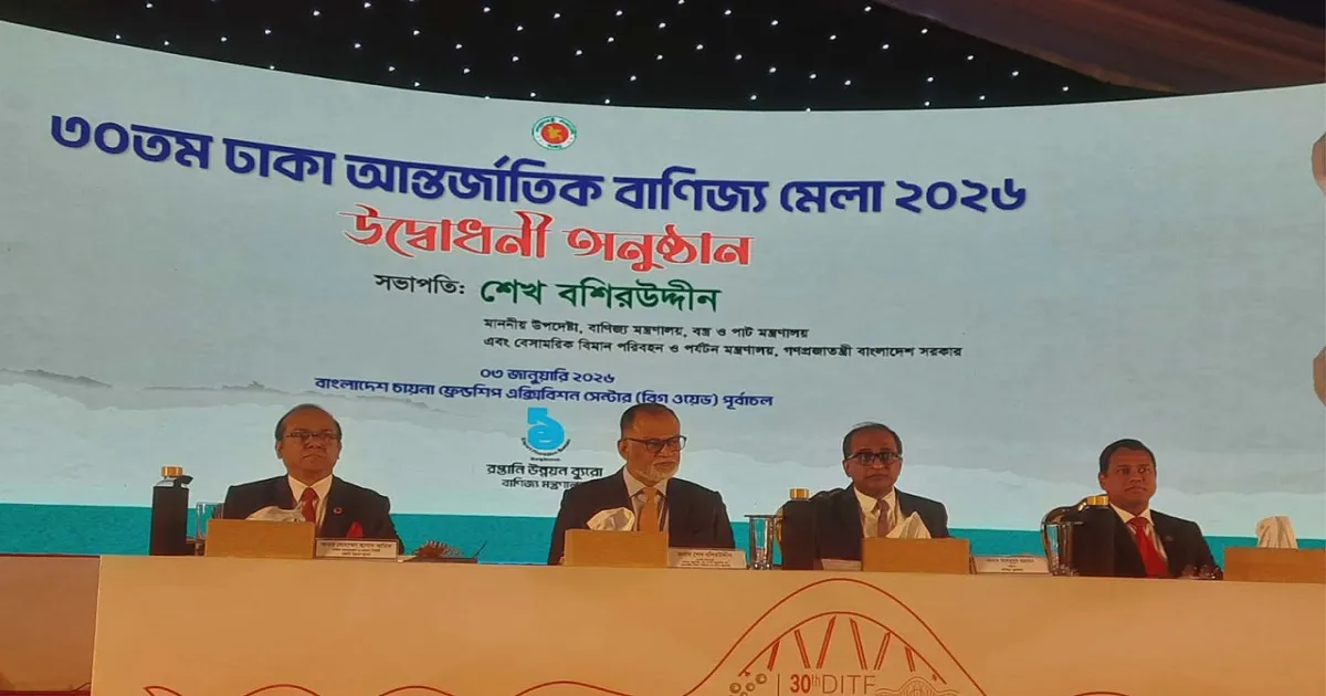দেশের সর্ববৃহৎ পণ্য প্রদর্শনী আয়োজন ৩০তম ঢাকা আন্তর্জাতিক বাণিজ্যমেলা-২০২৬ এর আনুষ্ঠানিক উদ্বোধন করা হয়েছে। নারায়ণগঞ্জের রূপগঞ্জে পূর্বাচল ৪ নম্বর সেক্টরে অবস্থিত স্থায়ী ভেন্যু বাংলাদেশ–চায়না ফ্রেন্ডশিপ এক্সিবিশন সেন্টার (বিবিসিএফইসি) ভবনে শনিবার (৩ জানুয়ারি) সকাল ১১টায় এ মেলার উদ্বোধন করেন বাণিজ্য উপদেষ্টা শেখ বশির উদ্দিন।