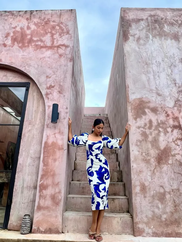 সাফার পরনে ছিল সাদা ও গাঢ় নীল রঙের ফ্লোয়িং গাউন, পাতার মতো নকশায় সাজানো লম্বা স্কার্ট ও ঢিলে হাতা যুক্ত পোশাকটি তাকে করেছে আরও আকর্ষণীয়। তারার ডিজাইনের কানের দুল, খোলা চুল এবং হালকা মেকআপের সঙ্গে পুরো সাজে ছিল একধরনের স্বতঃস্ফূর্ত সৌন্দর্য।