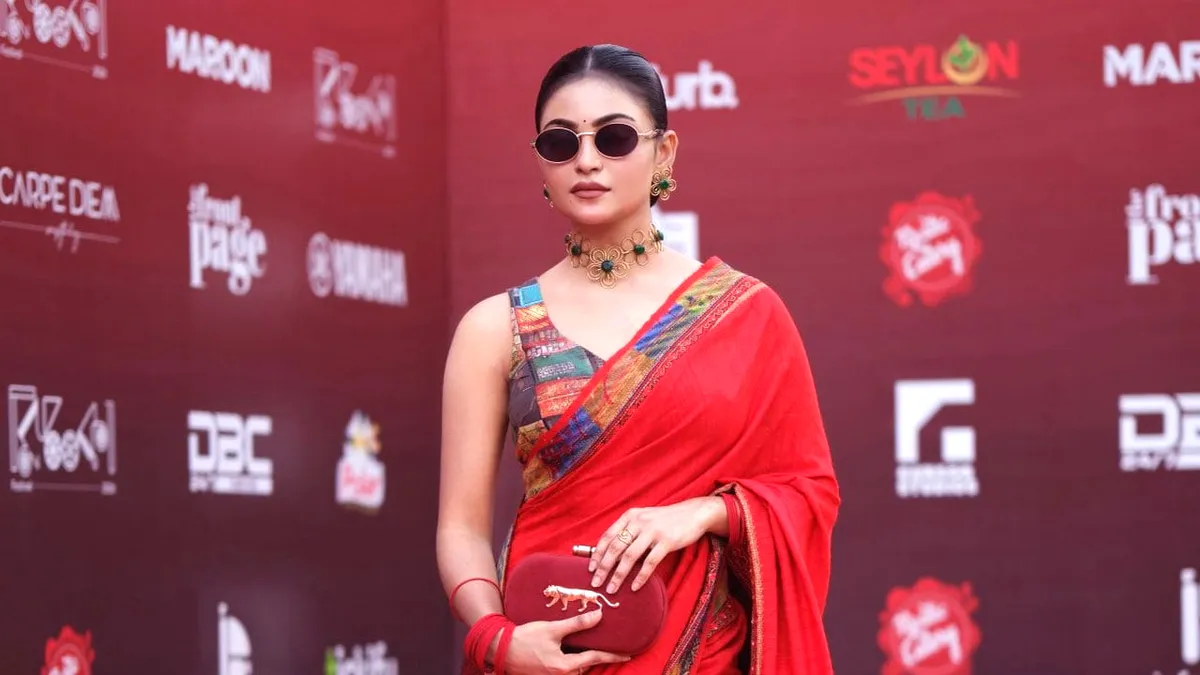 ফেস্টের আয়োজনে মারিয়াকে দেখা গেছে একেবারে ভিন্নধর্মী লুকে। তার পরনে ছিল উজ্জ্বল লাল রঙের আভিজাত্যপূর্ণ শাড়ি, যা তাকে দিয়েছে এক অনন্য আবেদন। এর সঙ্গে স্লিভলেস মাল্টিকালার ব্লাউজ এবং গলায় পাথরের কাজ করা চোকার নেকলেস তার সাজে এনে দেয় আলাদা মাত্রা। পুরো লুকে ছিল আধুনিকতা ও ঐতিহ্যের দারুণ সমন্বয়।