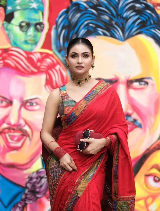 লাল শাড়িতে রূপের ঝলক মারিয়া শান্তর, মুগ্ধ নেটিজেনরা