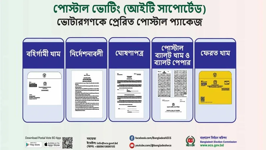 ইসি পোস্টাল ব্যালটের জন্য ভোটার নিবন্ধনের সময়সীমা ও অন্যান্য প্রক্রিয়ার বিস্তারিতও পরিপত্রে উল্লেখ করেছে। এই উদ্যোগের মাধ্যমে বিদেশে থাকা প্রায় এক কোটি বাংলাদেশি ভোটারও নির্বাচনে অংশগ্রহণ করতে সক্ষম হবেন।