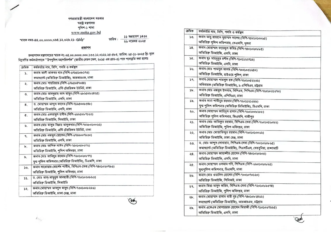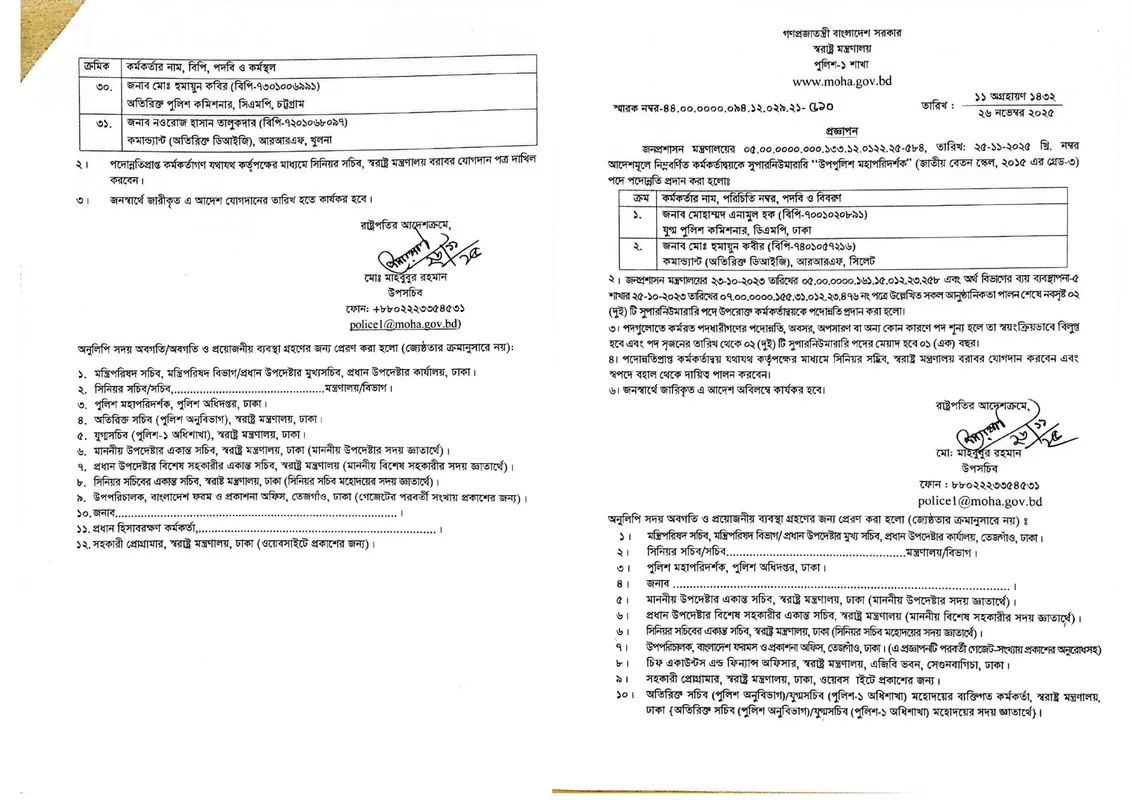প্রজ্ঞাপনে বলা হয়েছে, জনস্বার্থে জারি করা এ পদোন্নতির আদেশ অবিলম্বে কার্যকর হবে। নতুন পদে যোগদানের জন্য সংশ্লিষ্ট কর্মকর্তাদের যথাযথ কর্তৃপক্ষের মাধ্যমে স্বরাষ্ট্র মন্ত্রণালয়ের সিনিয়র সচিব বরাবর যোগদানপত্র জমা দিতে বলা হয়েছে।