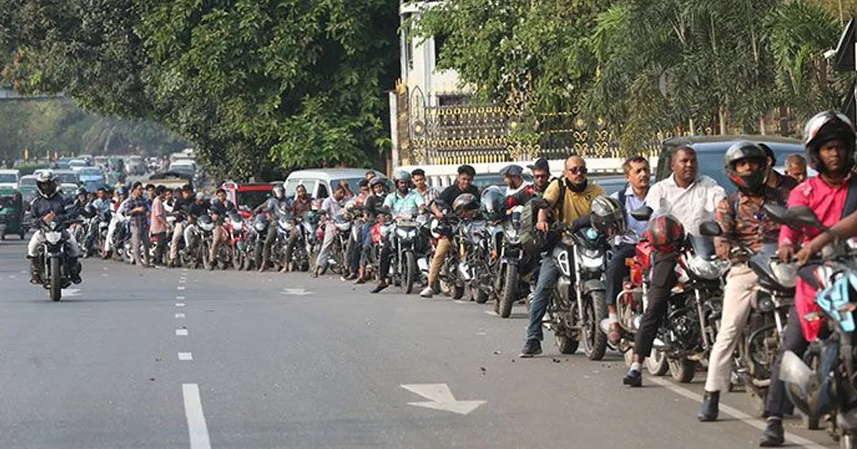 রাজধানীতে তেলের সংকটের কারণে পেট্রোল পাম্পগুলোতে দীর্ঘ লাইন পড়েছে। অনেকে ভোর থেকে অপেক্ষা করেও তেল পাচ্ছেন না। ফলে কর্মঘণ্টা নষ্ট হচ্ছে, যানজট বাড়ছে এবং জরুরি সেবা ব্যাহত হচ্ছে। সরকার মোটরসাইকেলের জন্য ফুয়েল পাস চালু করলেও সাধারণ মানুষের ভোগান্তি কমছে না। বিশেষজ্ঞরা জ্বালানি সাশ্রয় ও অবৈধ মজুতের বিরুদ্ধে কঠোর ব্যবস্থা নেওয়ার দাবি জানিয়েছেন।