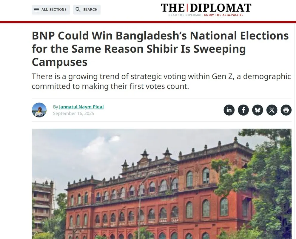 সবশেষে, দ্য ডিপ্লোম্যাট মন্তব্য করেছে- বাংলাদেশের জেনারেশন জেড এক নতুন ভোট-সংস্কৃতি গড়ে তুলছে, যেখানে বাস্তবতা ও কৌশলই নির্ধারণ করছে রাজনীতির ভবিষ্যৎ দিকচিত্র।