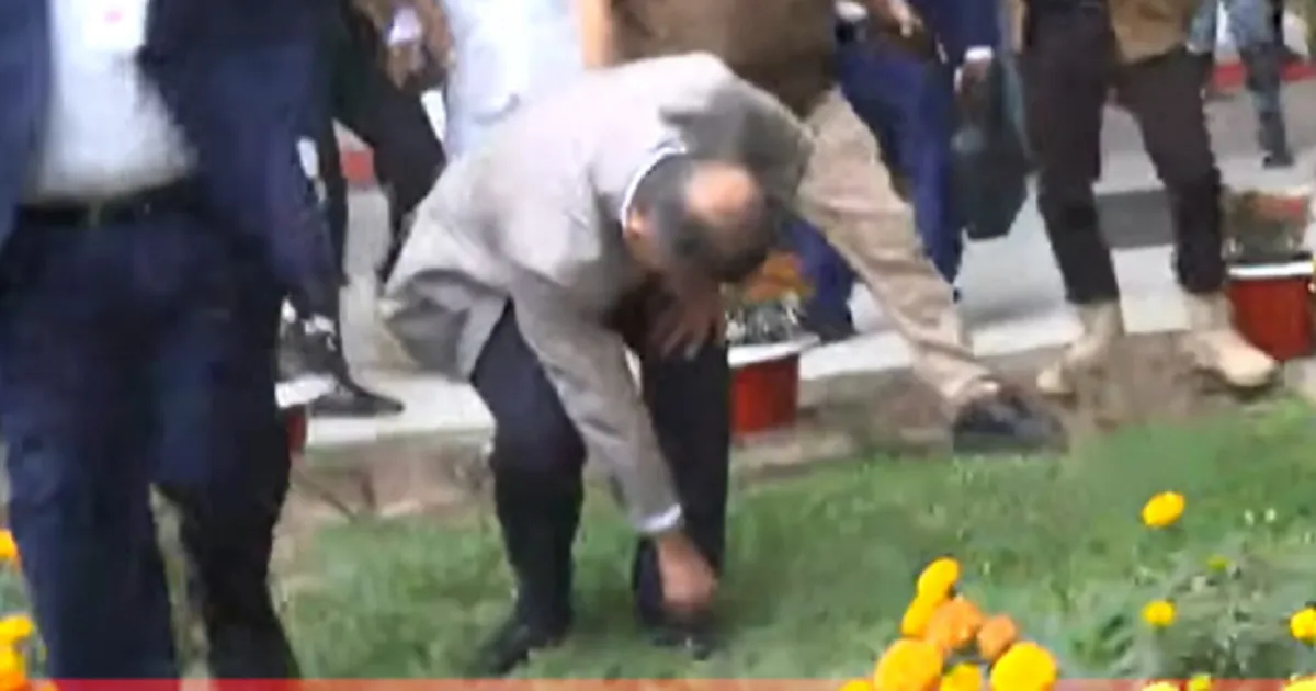 বিমানবন্দরের বাইরে জুতা খুলে খালি পায়ে শিশিরভেজা ঘাসে হাঁটেন এবং সরাসরি মাটির স্পর্শ অনুভব করেন। এ দৃশ্যটি উপস্থিত সকলের মধ্যে উচ্ছ্বাস এবং আবেগের স্রোত সৃষ্টি করে।