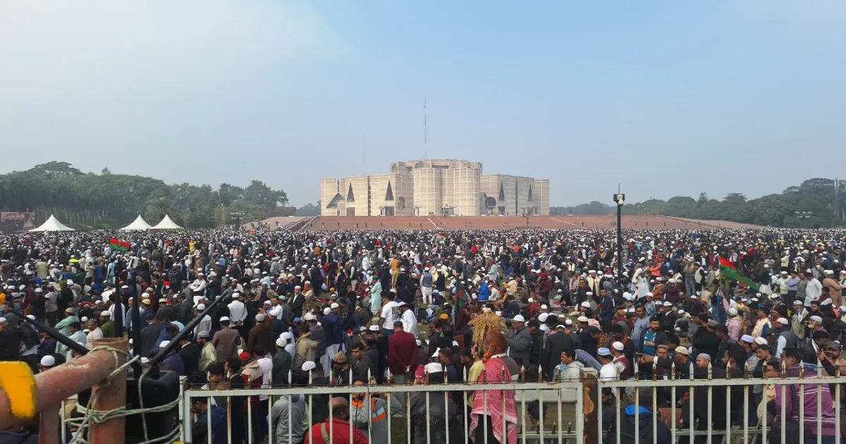 সাবেক প্রধানমন্ত্রী ও বিএনপি চেয়ারপারসন বেগম খালেদা জিয়ার জানাজা বুধবার (৩১ ডিসেম্বর) বিকেল ৩টা ৩ মিনিটে জাতীয় সংসদ ভবনের দক্ষিণ প্লাজা ও মানিক মিয়া অ্যাভিনিউয়ে সম্পন্ন হয়েছে। জনজোয়ারে সামাজিক ও রাজনৈতিক শোকের মিশ্র আবহে মরহুমার প্রতি শেষ শ্রদ্ধা জানানো হয়।