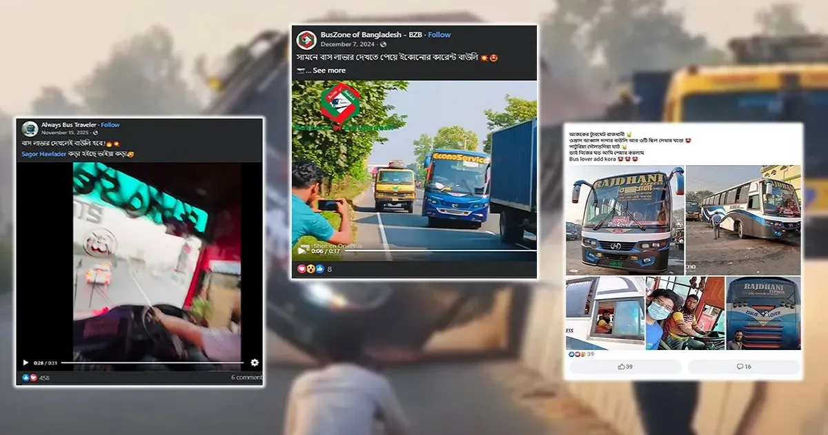 এই তথাকথিত ‘বাস লাভার’ গোষ্ঠীগুলো সামাজিক মাধ্যমে গ্রুপ তৈরি করে রেস বা প্রতিযোগিতার আয়োজন করে। সেখানে উসকানিমূলক ভাষা ব্যবহার করে চালকদের আক্রমণাত্মক ড্রাইভিংয়ে উৎসাহ দেওয়া হয়। এমনকি গভীর রাতে হেডলাইট বন্ধ করে গাড়ি চালানোর মতো আত্মঘাতী কাজও ‘বীরত্ব’ হিসেবে প্রচার পাচ্ছে।