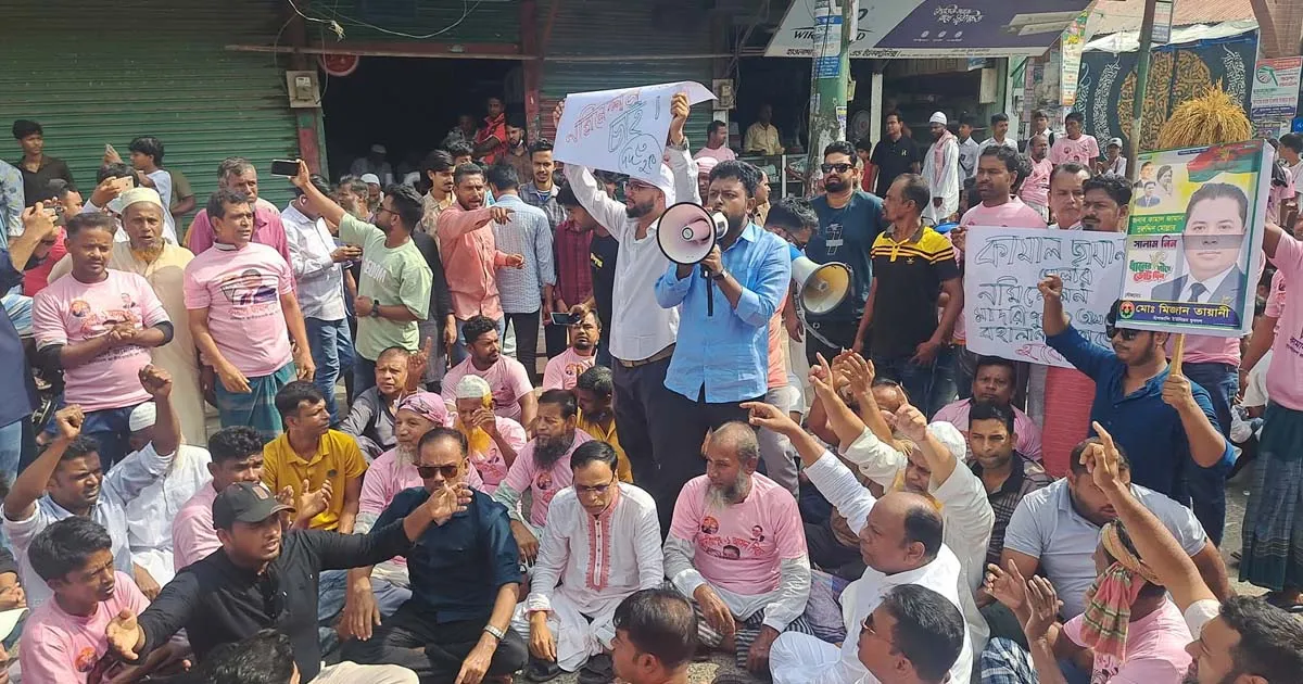 সকাল থেকেই উপজেলার বিভিন্ন এলাকা থেকে দলের নেতাকর্মীরা মিছিল নিয়ে সড়কে এসে সমবেত হন। কিছু সময়ের মধ্যে জনসমাগম বাড়তে থাকলে পুরো এলাকা বিক্ষোভকারীদের দখলে চলে যায়। তারা ‘কামাল জামানের মনোনয়ন স্থগিত মানি না, ‘অবিলম্বে মনোনয়ন পুনর্বহাল চাই’, ‘গণতন্ত্রের বিজয় নিশ্চিত কর’—এমন স্লোগান দিতে থাকেন।