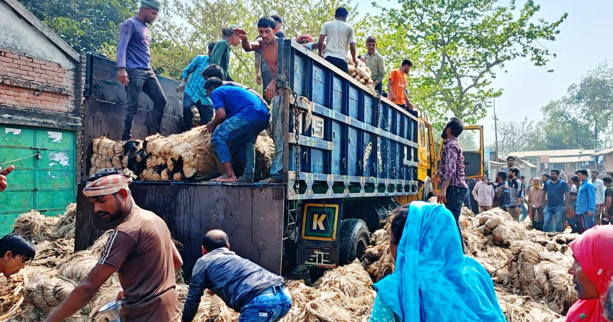 স্থানীয় সূত্রে জানা যায়, শ্রমিকরা গোডাউন থেকে ট্রাকে পাট তুলছিলেন। এসময় অসাবধানতাবশত একটি পাটের আটি বৈদ্যুতিক সাইড লাইনে স্পর্শ করলে সঙ্গে সঙ্গে ট্রাকে থাকা পাটে আগুন ধরে যায়। মুহূর্তেই আগুন ছড়িয়ে পড়লে এলাকাজুড়ে আতঙ্ক তৈরি হয়। পরিস্থিতি বেগতিক দেখে ট্রাকচালক দ্রুত গাড়িটি ফাঁকা স্থানে সরিয়ে নেন।