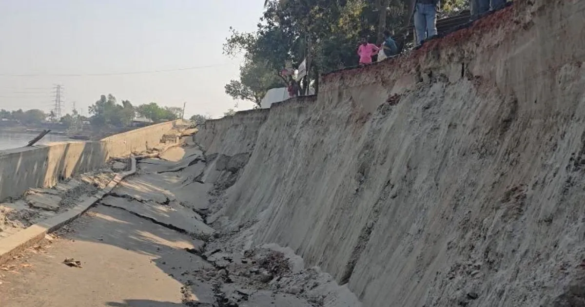 তড়িঘড়ি নির্মাণে উদ্বোধনের আগেই ধসে পড়ল ২৬ কোটি টাকার সড়ক